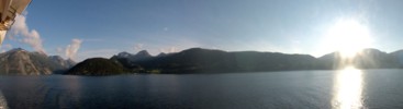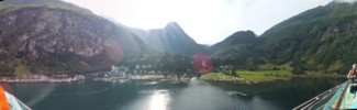 Below are panoramas of photos taken at the fjords near Geiranger, Norway during our cruise. Photos taken August 17, 2012. Click on image to enlarge.